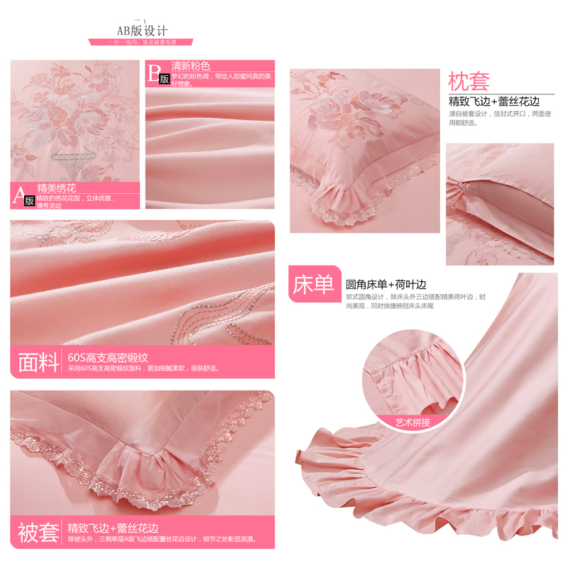 爱的协奏曲 床单四件套(被套1件床单1件枕套2件)(适合1.5米床)【棉/粉】 |