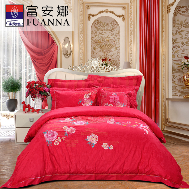 花好月圆 床单八件套(被套1件床单1件枕套4件方抱芯1件方抱套1件)(适合1.8米床)【纯棉提花/红】 |