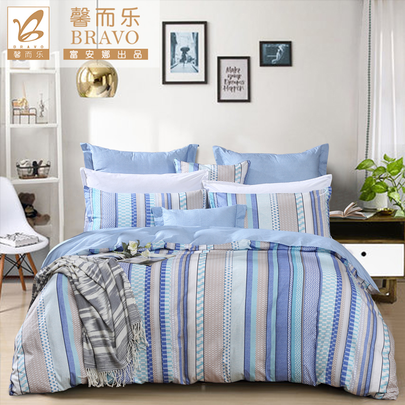 北欧小镇 床单四件套(被套1件床单1件枕套2件)(适合1.5米床)【纯棉/蓝】 |