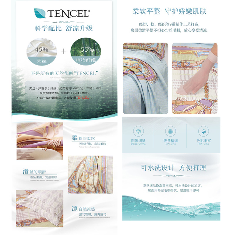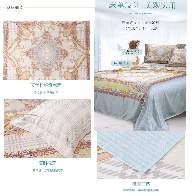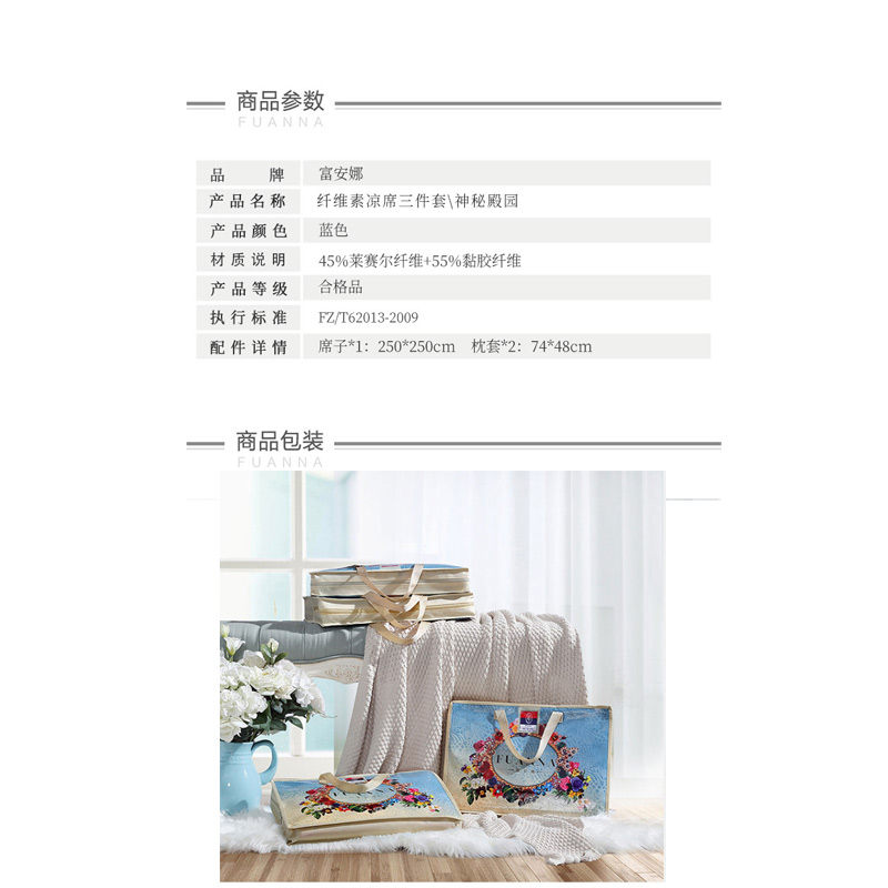 神秘殿园 倾城凉席床单款三件套(凉席1件枕套2件)(适合1.8米床)【竹纤维/蓝】 |