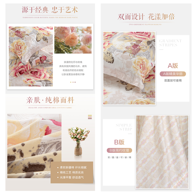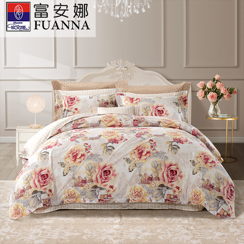 堇色安年 床单四件套(被套1件床单1件枕套2件)(适合1.8米床)【纯棉/粉】 |