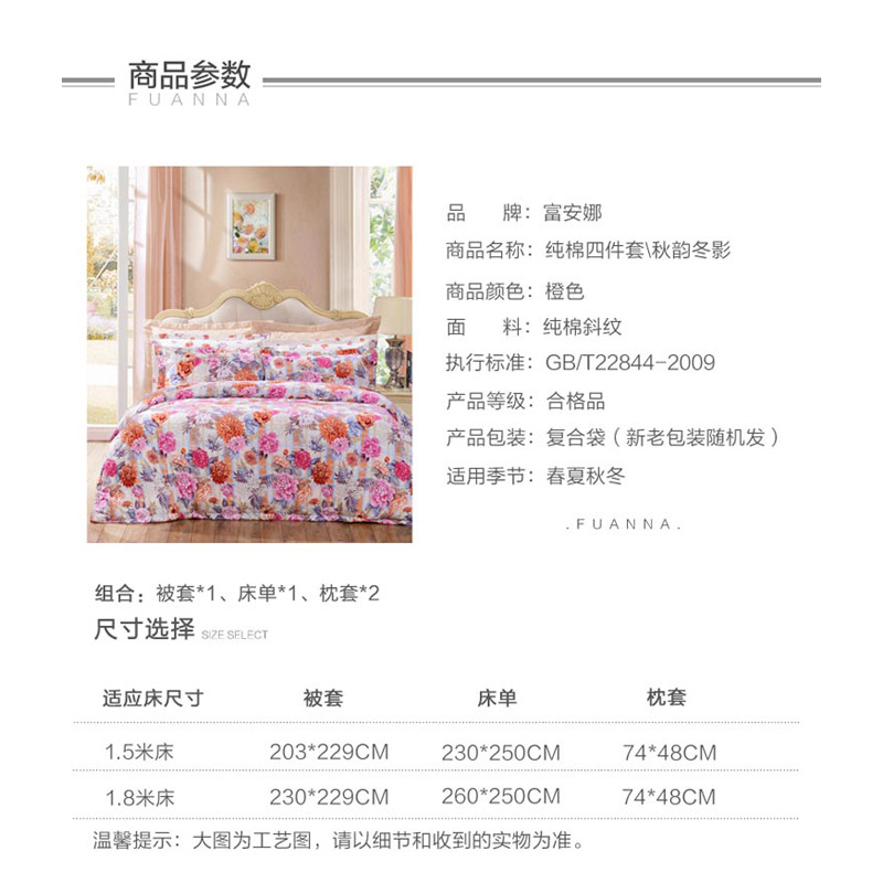 秋韵冬影 床单四件套(被套1件床单1件枕套2件)(适合1.8米床)【40支斜纹133*72/橙】 |