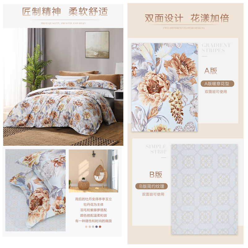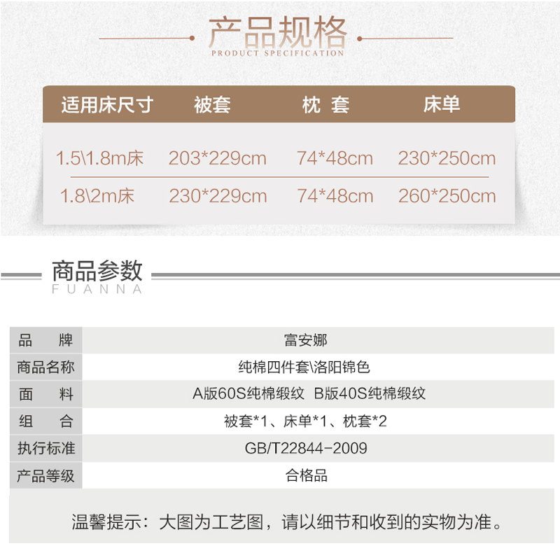 洛阳锦色 床单四件套(被套1件床单1件枕套2件)(适合1.5米床)【纯棉缎纹/黄】 |