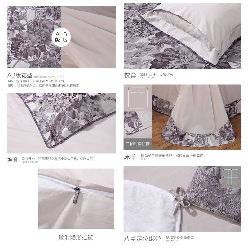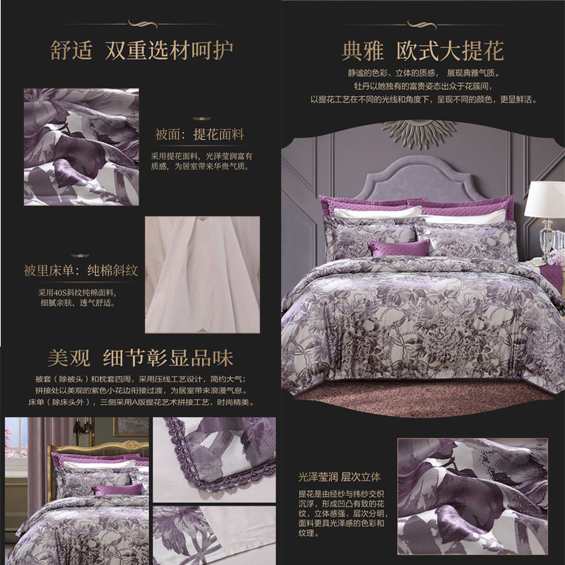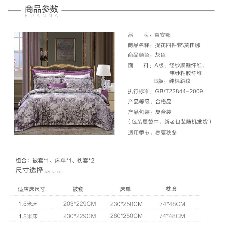 莫佳娜 床单四件套(被套1件床单1件枕套2件)(适合1.5米床)【A版:涤粘提花;B版:纯棉/灰】 |