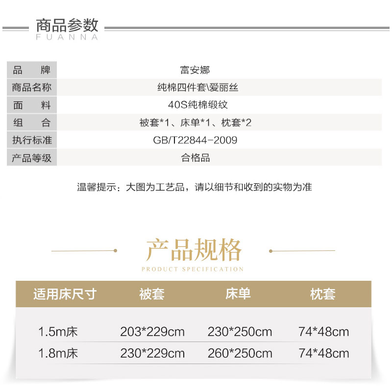 爱丽丝床单四件套(被套1件床单1件枕套2件)(适合1.5米床)【纯棉缎纹/粉】 |