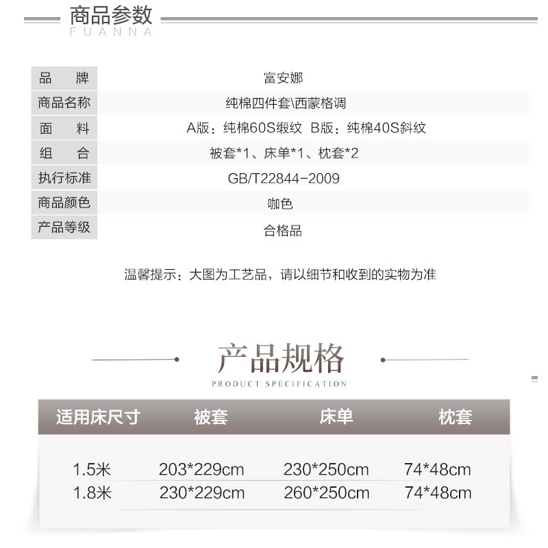 纯棉缎纹四件套(被套1件床单1件枕套2件)(适合1.5米床)【纯棉缎纹/咖】 |