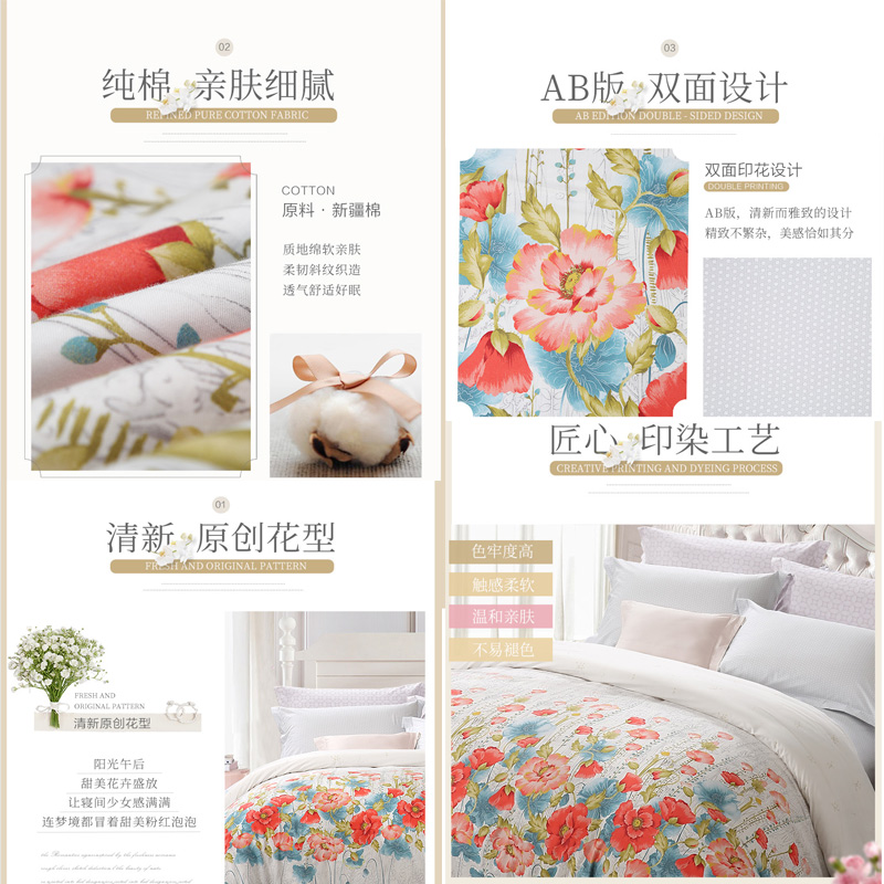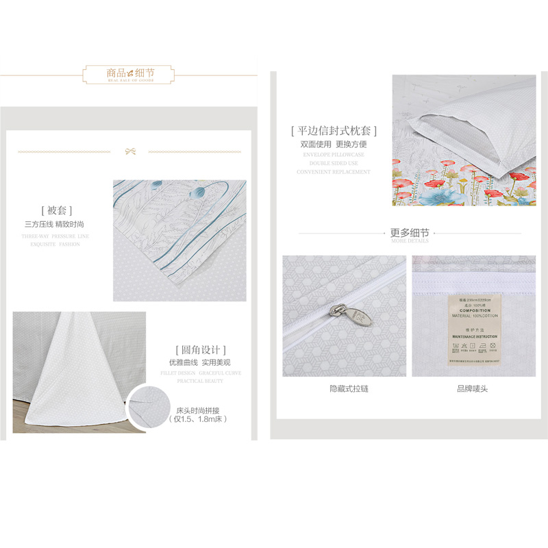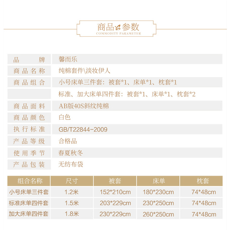 淡妆伊人 床单三件套(被套1件床单1件枕套1件)(适合1.2米床)【40支纯棉/白】 |