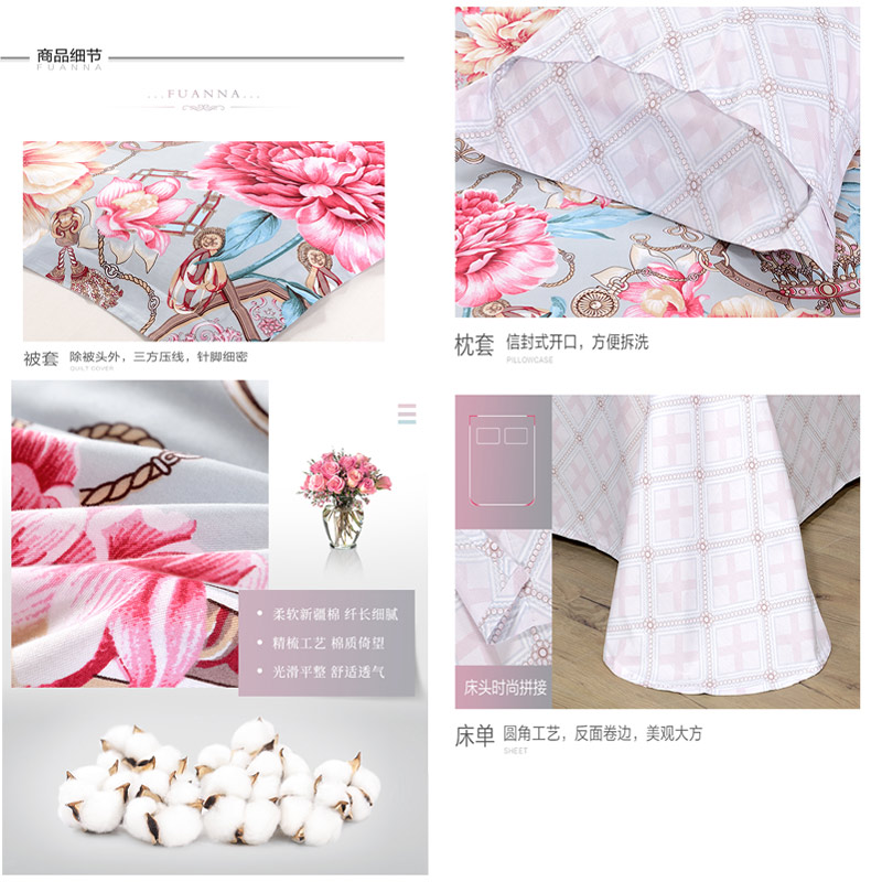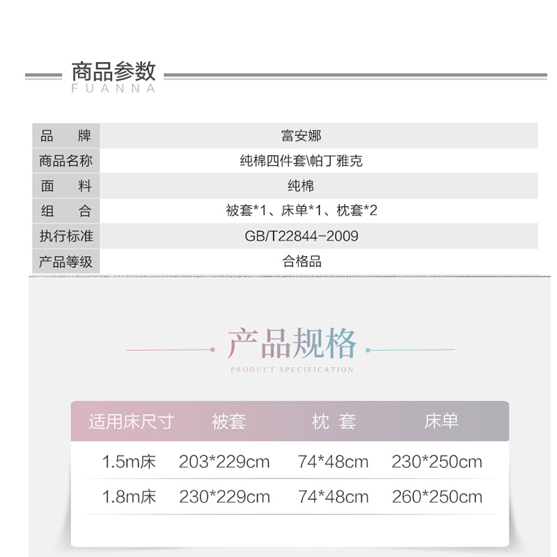 帕丁雅克 床单四件套(被套1件床单1件枕套2件)(适合1.8米床)【40支纯棉/花色】 |