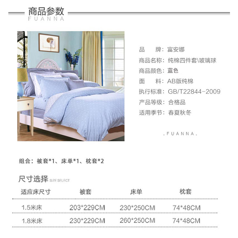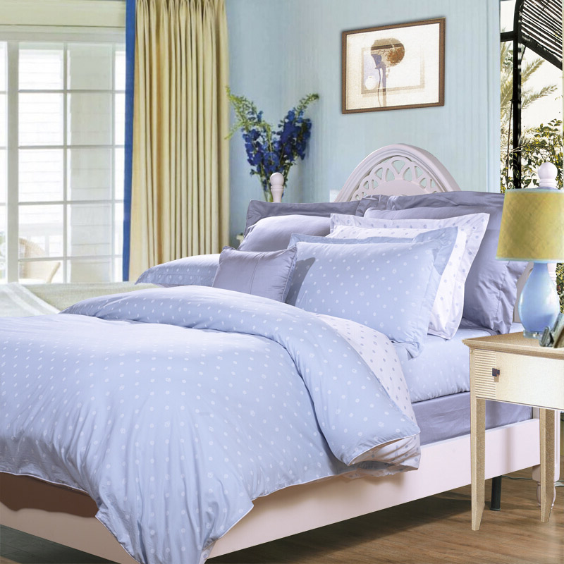 清新波点 床单四件套(被套1件 床单1件枕套2件)(适合1.5米床)【纯棉/浅蓝】 |