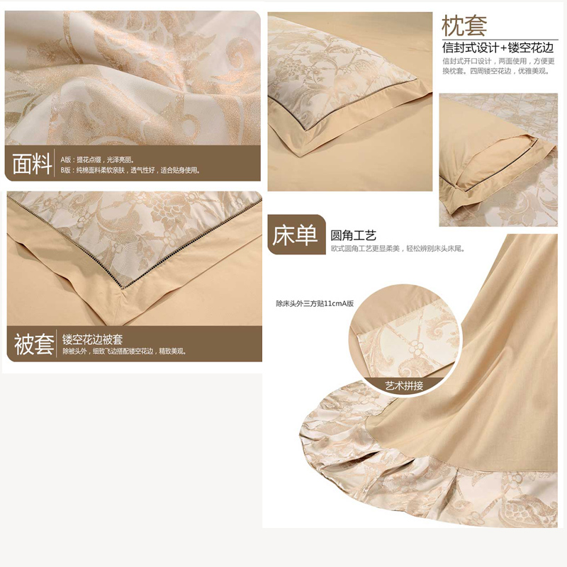广岛之恋 床单四件套(被套1件 床单1件 枕套2件)(适合1.8米床)【面料1:涤粘提花;面料2纯棉/黄】 |