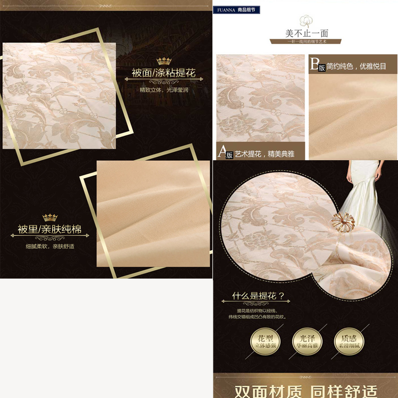 广岛之恋 床单四件套(被套1件 床单1件 枕套2件)(适合1.5米床)【面料1:涤粘提花;面料2纯棉/黄】 |