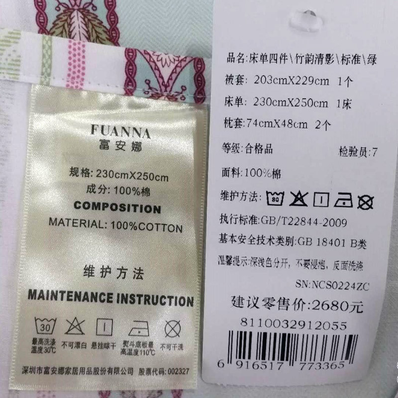 竹韵清影 床单四件套(适用1.5米床)(被套1件床单1件枕套2件)【高支高密棉/绿】 |