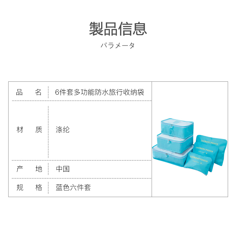 【6件套】旅行箱多功能防水旅行收纳袋【涤纶/天蓝色】 |