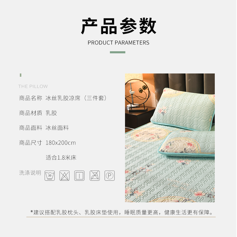 TAIHI泰嗨天然乳胶冰丝凉席三件套鹊上枝头绿色(适合1.8米床)【天然乳胶/绿色】 |