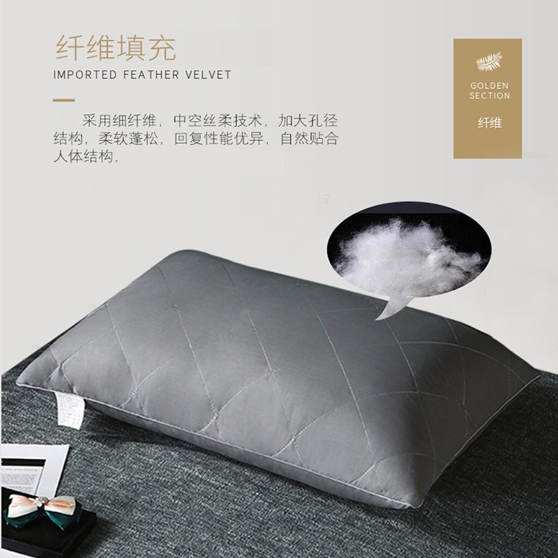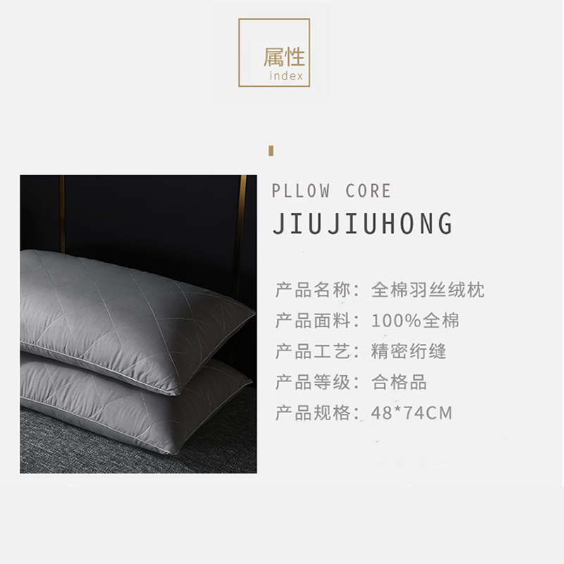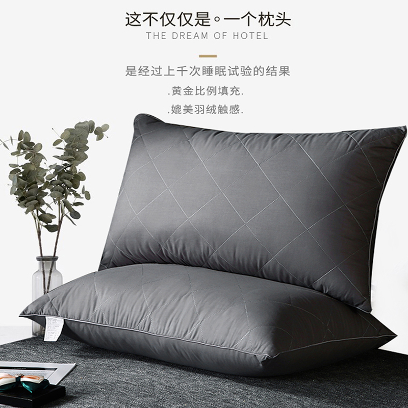 全棉大方格枕芯羽丝绒枕头【面料全棉填充羽丝绒/全棉灰色】 |