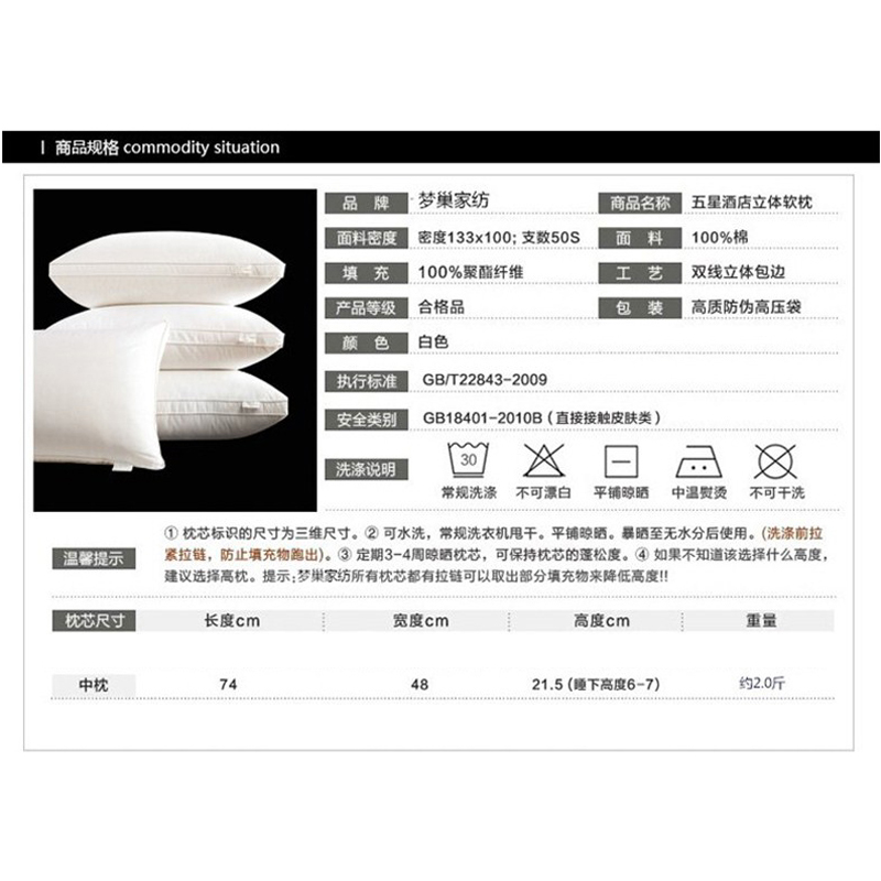五星级酒店全棉枕芯可水洗【面料全棉填充羽丝绒/全棉中枕】 |