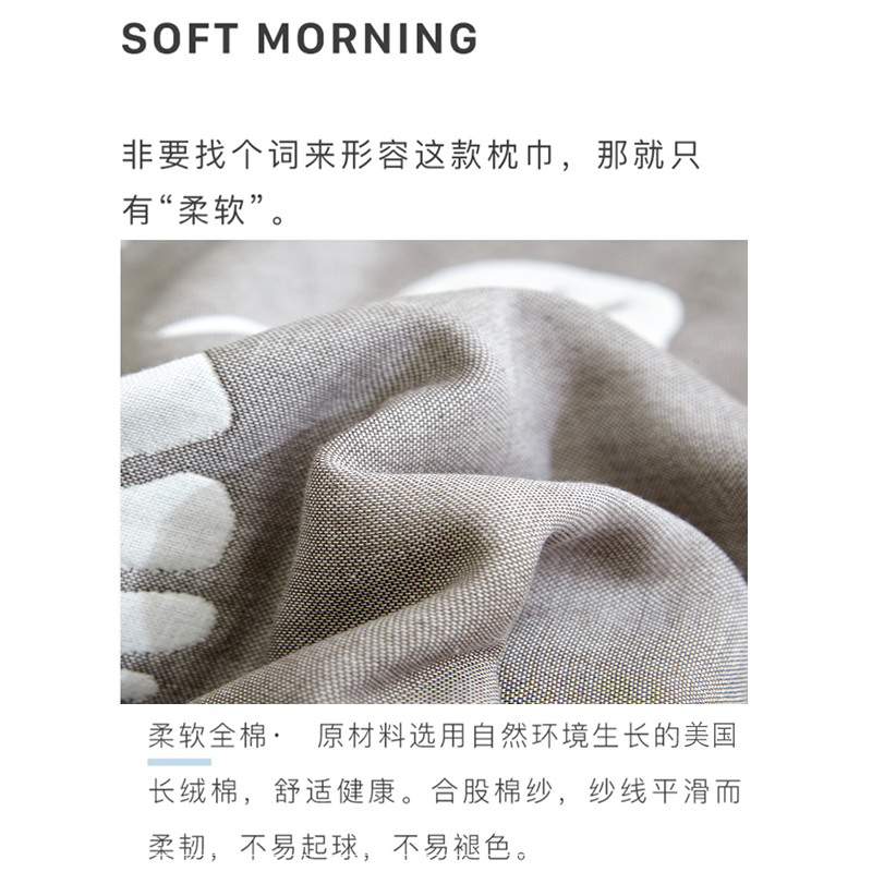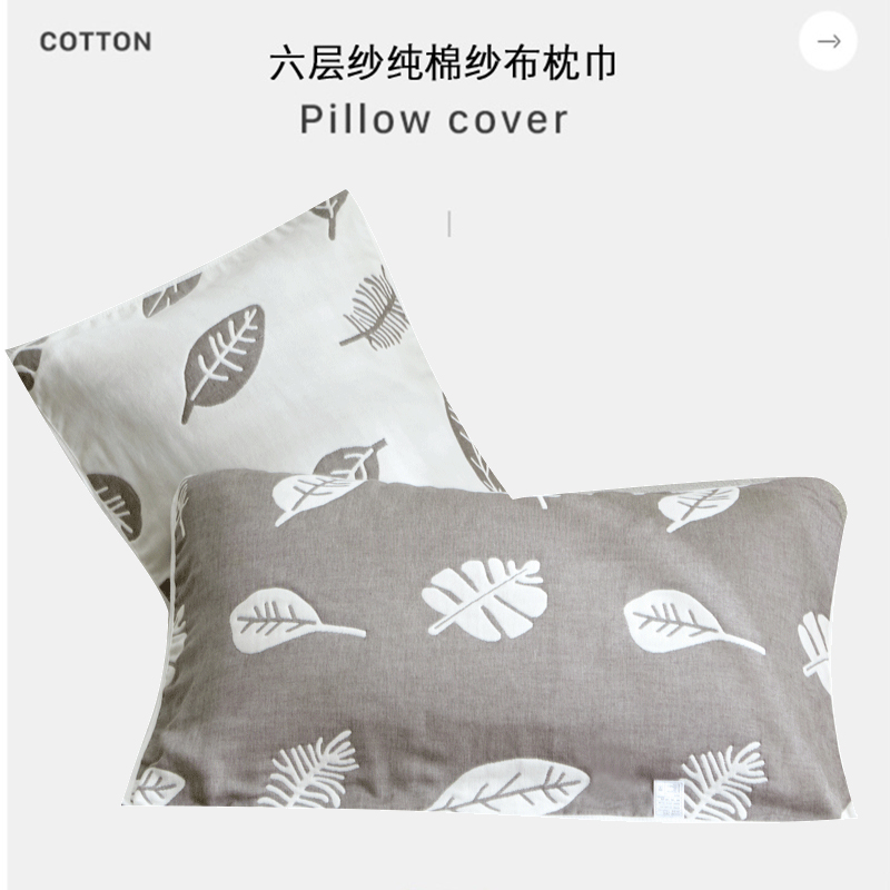 高品质A类全棉六层纱布枕巾一对【长绒棉/枕巾-枫叶灰】 |