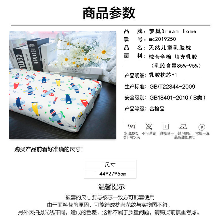 天然儿童乳胶枕(枕头一件)【枕套全棉 填充乳胶(乳胶含量85%-98%)/小飞机】 |