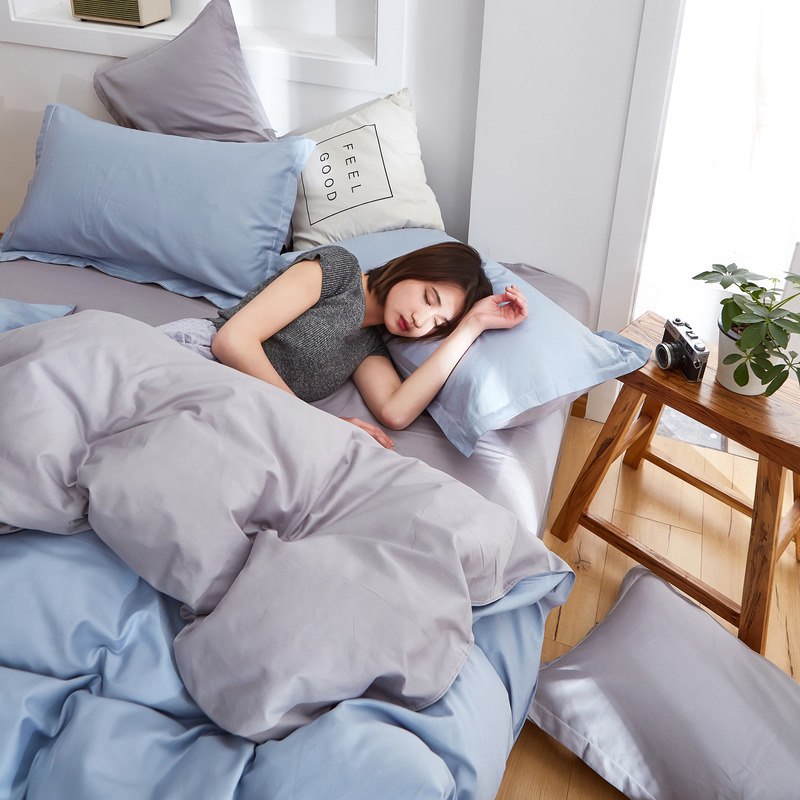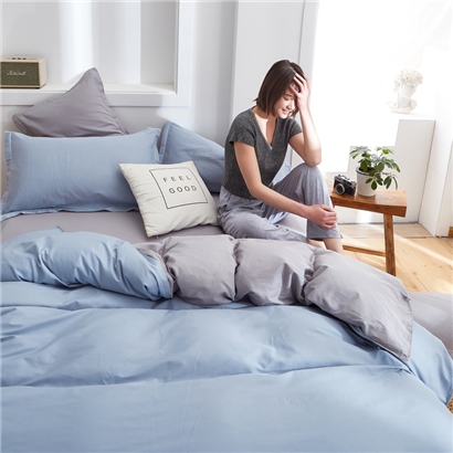 极简时尚双拼全棉喷气四件套【全棉/蓝灰+浅灰】 |