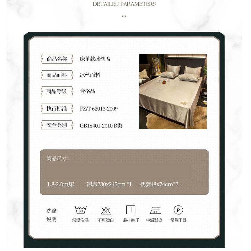 无印纯色床单款冰丝凉席三件套可机洗【冰丝面料(聚酯纤维)/贵族-咖】 |