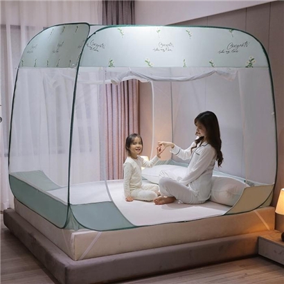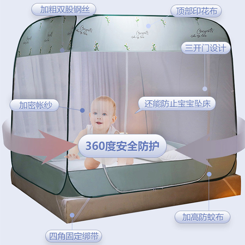 大顶部印花款免安装蚊帐【面料聚酯纤维支架包塑钢丝/小雏菊水绿】 |