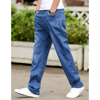 潮酷胖胖熊 牛仔裤男弹力宽松直筒裤 春夏季薄款大码男裤 加肥加大码休闲牛仔长裤 浅蓝色012# 36(2尺8) |
