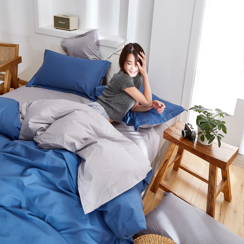 极简时尚双拼全棉喷气四件套【全棉/深蓝+浅灰】 |
