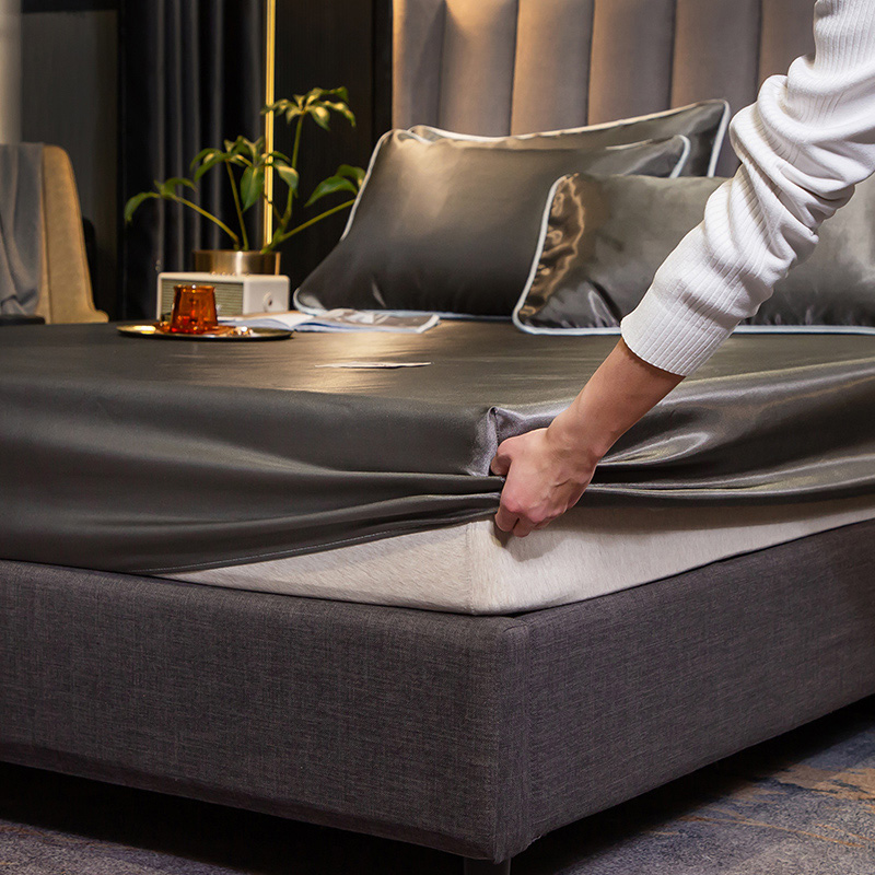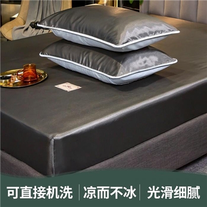 【柔软清爽 凉而不冰】无印床笠款冰丝席三件套【冰丝面料(聚酯纤维)/贵族-深灰】 |