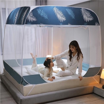 大顶部印花款免安装蚊帐【面料聚酯纤维支架包塑钢丝/蓝叶】 |