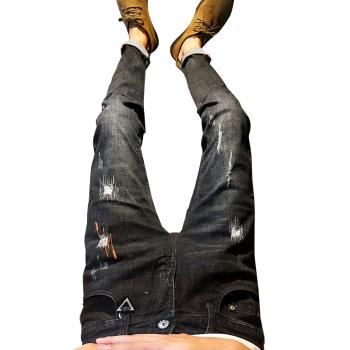 JAZKY破洞牛仔裤男修身小脚弹力直筒韩版潮流乞丐裤子春夏季九分裤 CC-175-NZK浅蓝色 34 |