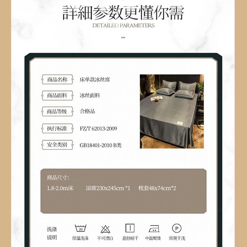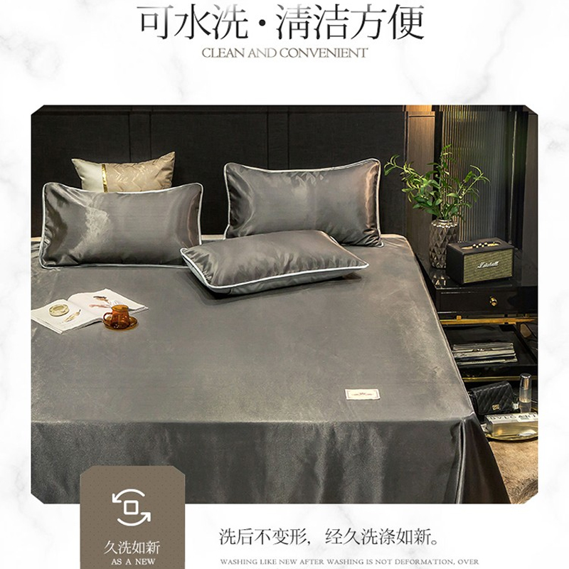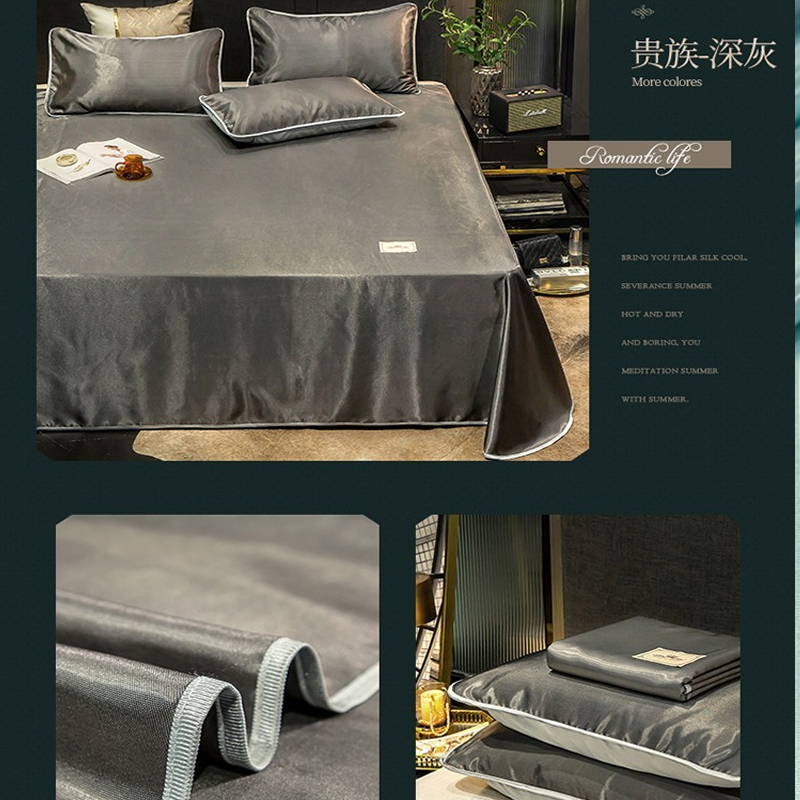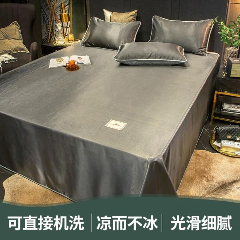 无印纯色床单款冰丝凉席三件套可机洗【冰丝面料(聚酯纤维)/贵族-深灰】 |