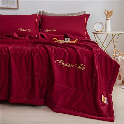 纯色刺绣水洗冰丝大豆纤维夏被【水洗冰丝(聚酯纤维)填充大豆纤维/温莎红】 |