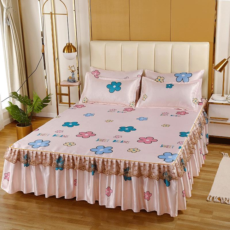 印花蕾丝床裙款冰丝席凉席三件套【冰丝(聚酯纤维)/简单爱】 |