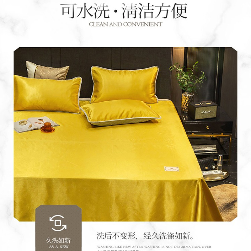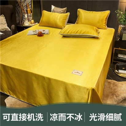 无印纯色床单款冰丝凉席三件套可机洗【冰丝面料(聚酯纤维)/贵族-姜黄】 |