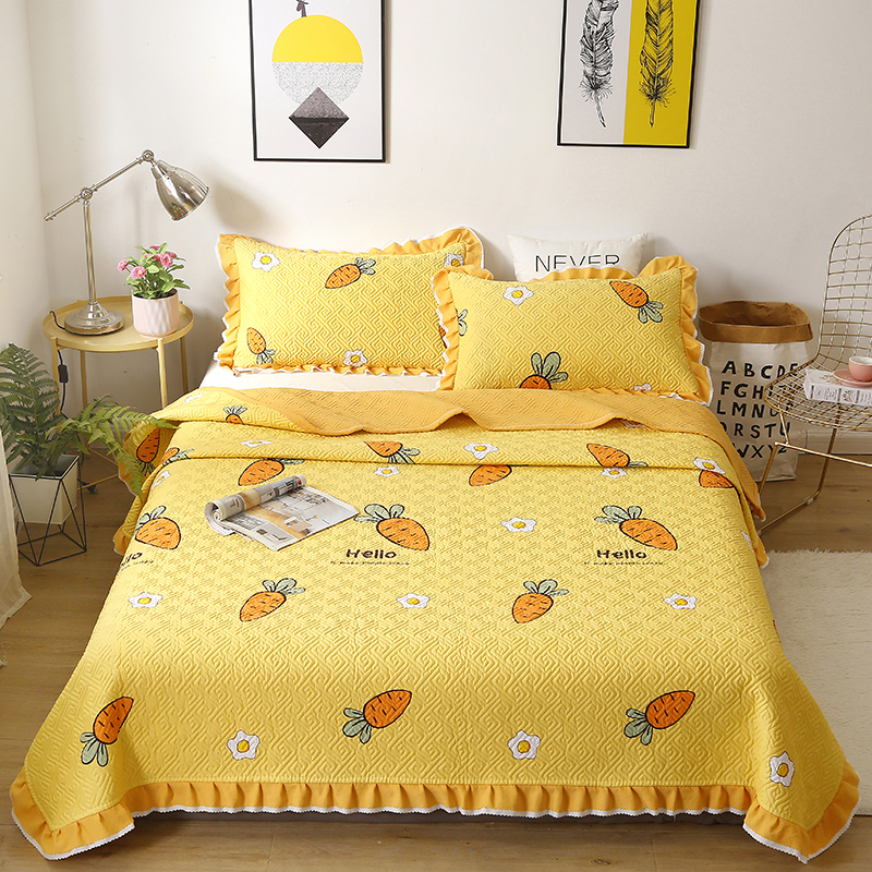 【三层复合】全棉夹棉绗缝床盖三件套【全棉/开心萝卜】 |