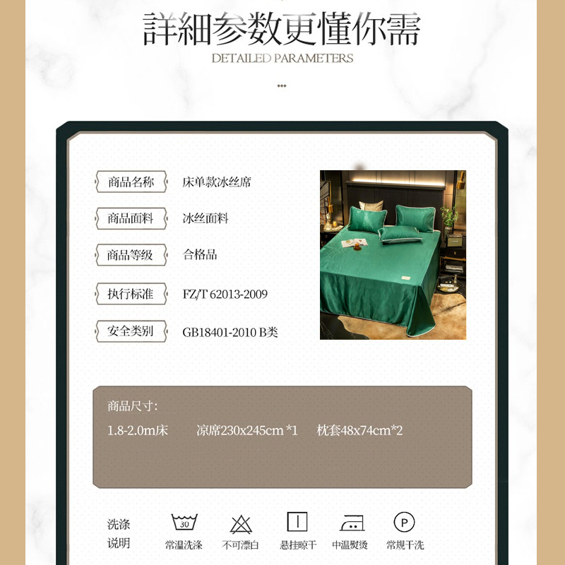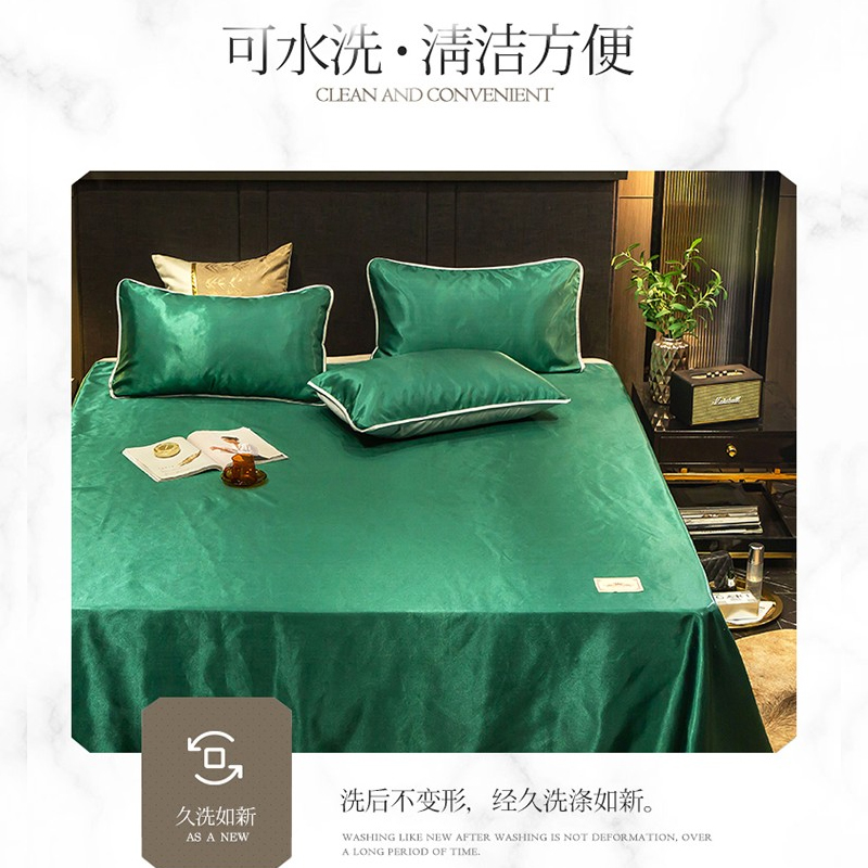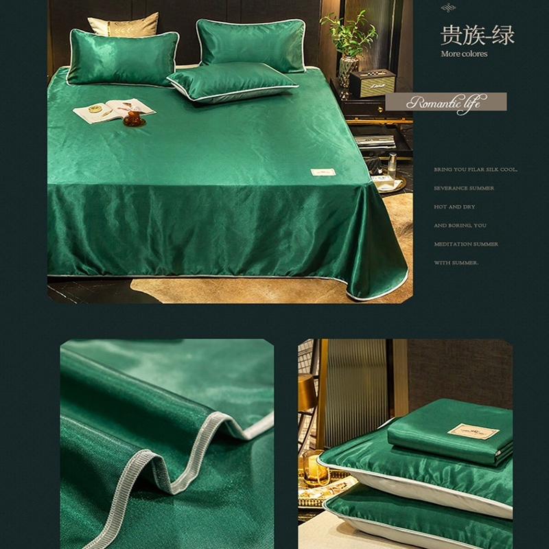 无印纯色床单款冰丝凉席三件套可机洗【冰丝面料(聚酯纤维)/贵族-绿】 |