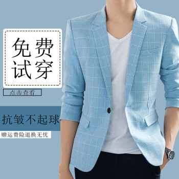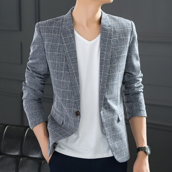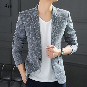 西服男春秋仿亚麻男士休闲西服格子小西装修身韩版潮流单西外套帅气上衣夏季超薄款颜丁 格子 灰色 48/M【115斤以内】 |