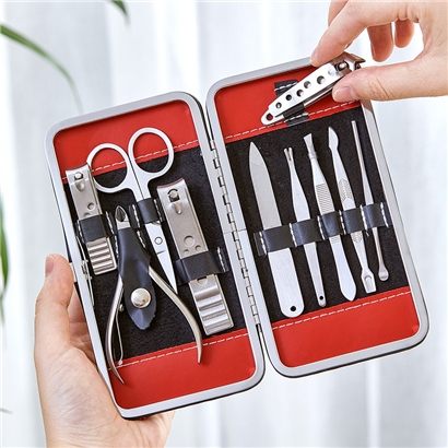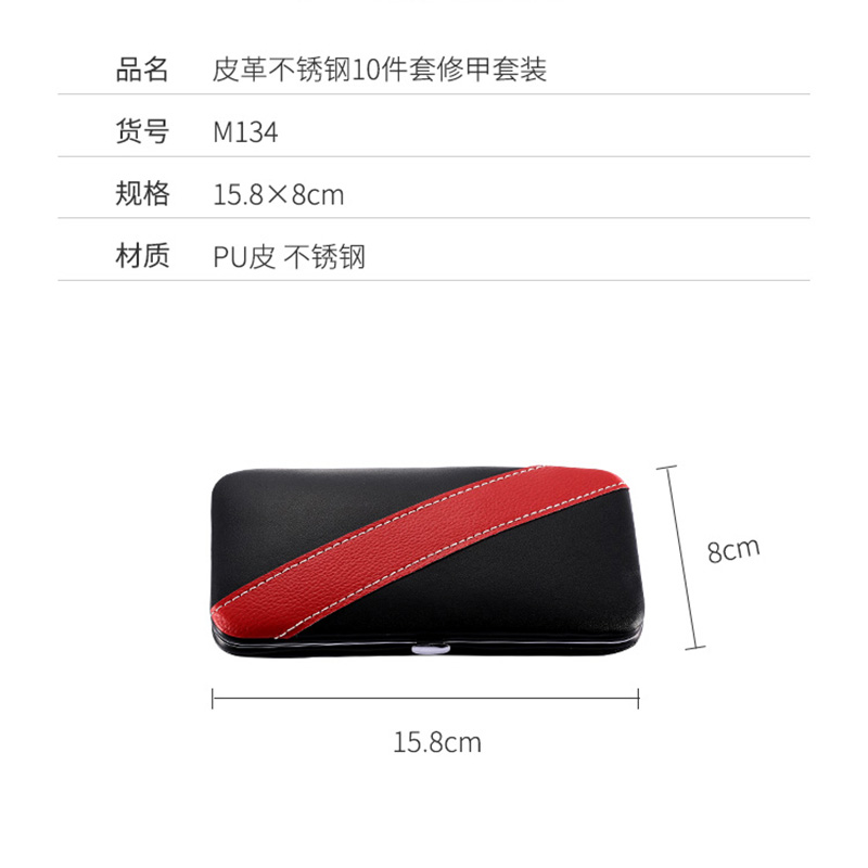 黑底红条皮革不锈钢10件套修甲套装【PU皮 不锈钢/图片色】 |