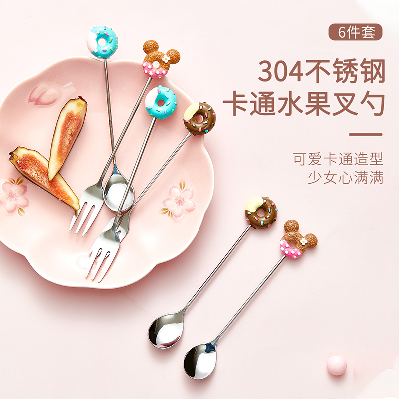 卡通304不锈钢水果叉勺6件套【304不锈钢 树脂/图片色】 |