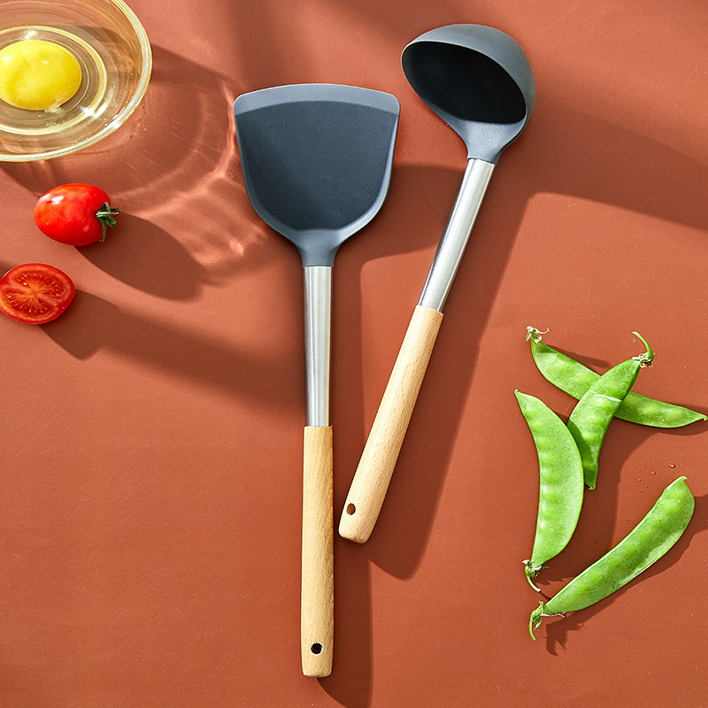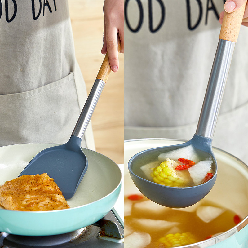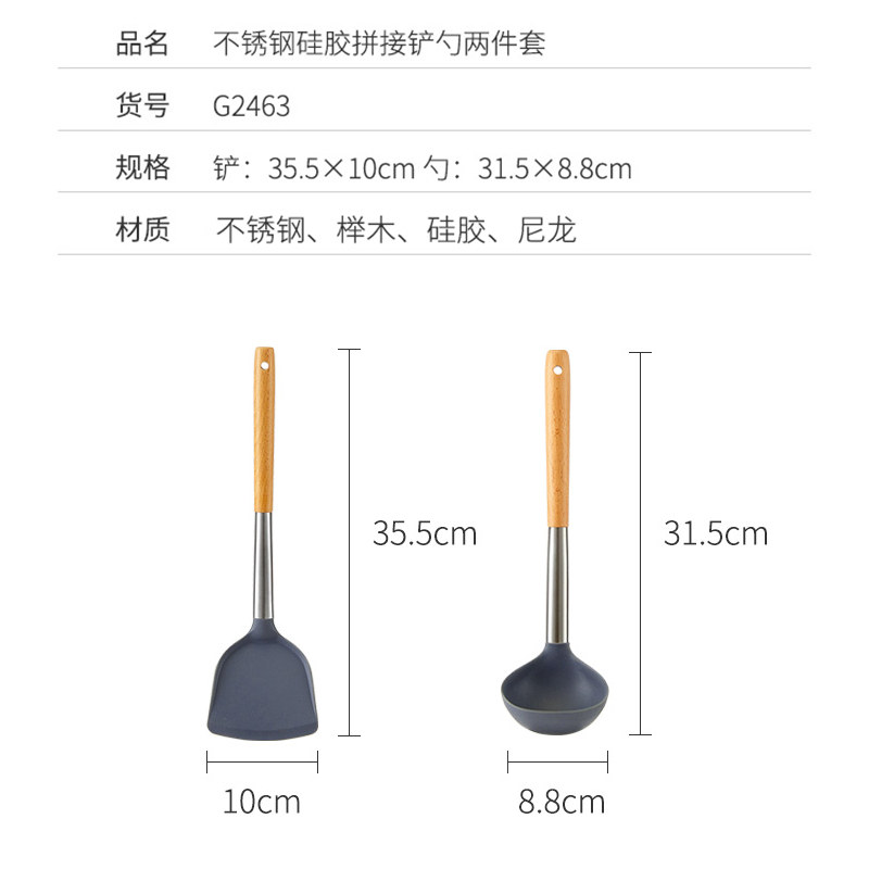 不锈钢硅胶拼接铲勺两件套【不锈钢 榉木 硅胶 尼龙/图片色】 |