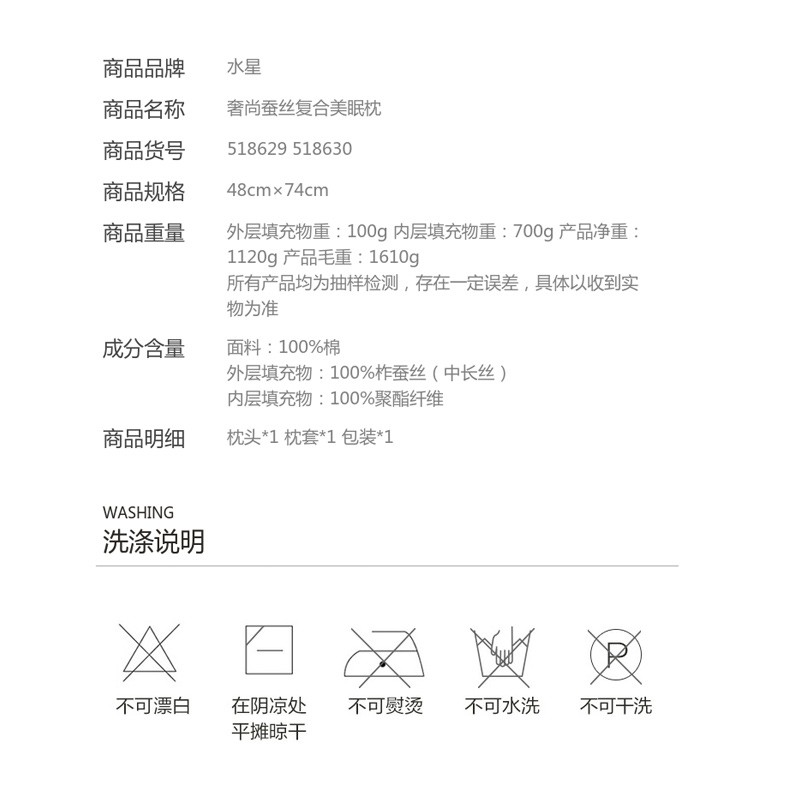 奢尚蚕丝复合美眠枕(枕芯*1)【面料:棉 外层填充:柞蚕丝(中长丝) 内层填充:聚酯纤维/奢尚蚕丝复合美眠枕(漂白色)】 |