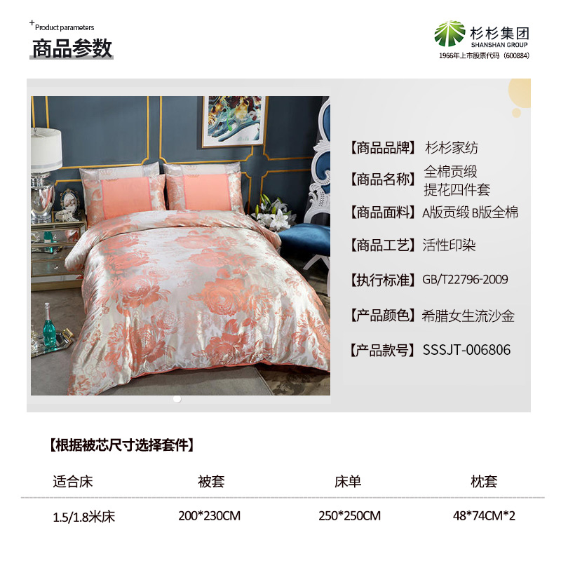 全棉贡缎提花四件套【全棉/希腊女生流沙金】 |