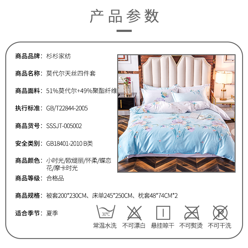 莫代尔天丝四件套【51%莫代尔+49%聚酯纤维/被套200*230床单245*250枕套48*74*2】 |