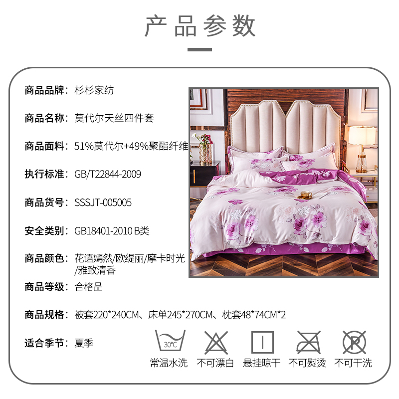 莫代尔天丝四件套【51%莫代尔+49%聚酯纤维/被套220*240床单245*270枕套48*74*2】 |