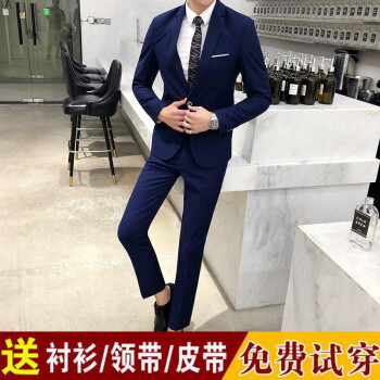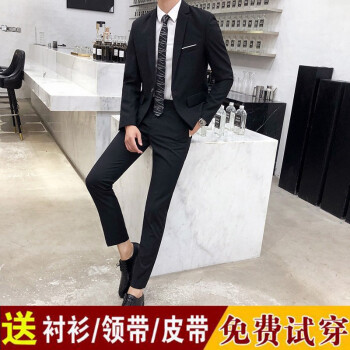 卡豪朗西服套装男四季新款商务休闲西装男韩版潮流职业正装小西装套装男绅士伴郎服新郎服结婚礼服 黑色(两件套) L |