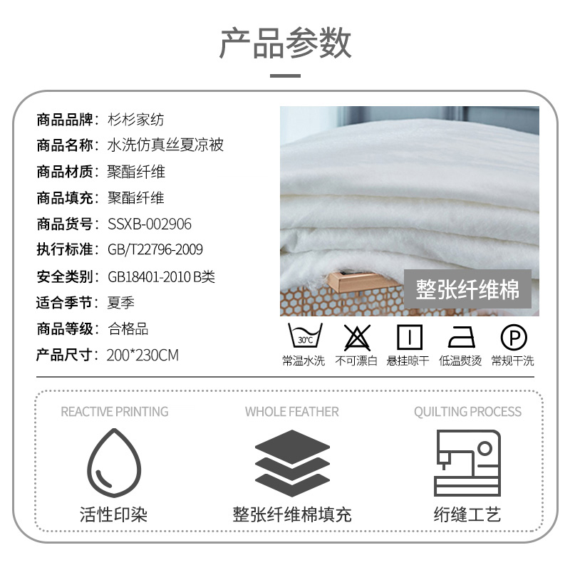 水洗仿真丝夏凉被【面料:聚酯纤维填充:聚酯纤维/颜色自选】 |