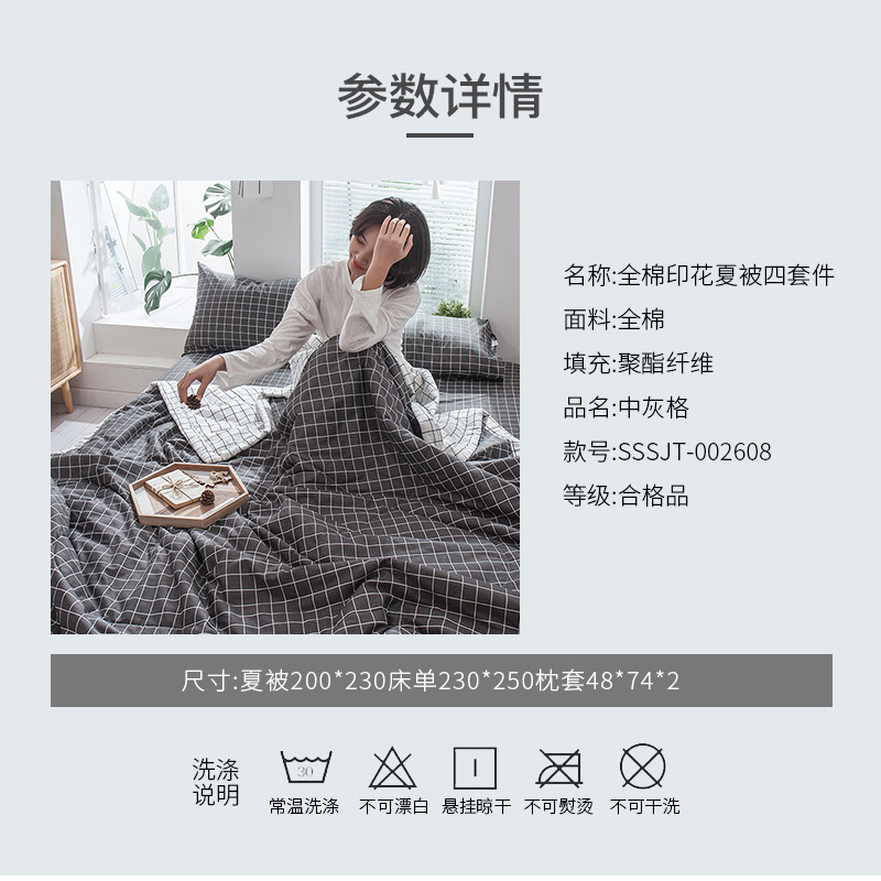 13070全棉夏被四件套【面料:纯棉填充:聚酯纤维/中灰格】 |