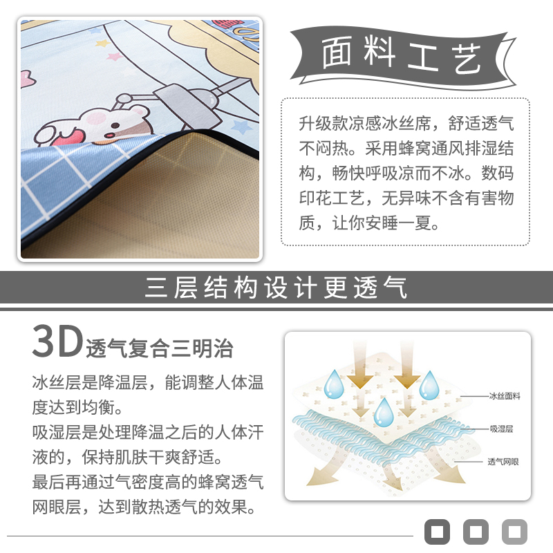 大版冰丝席凉席三件套【聚酯纤维/抓娃娃】 |