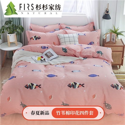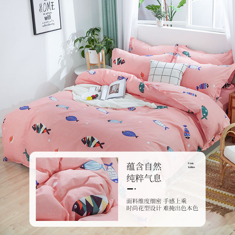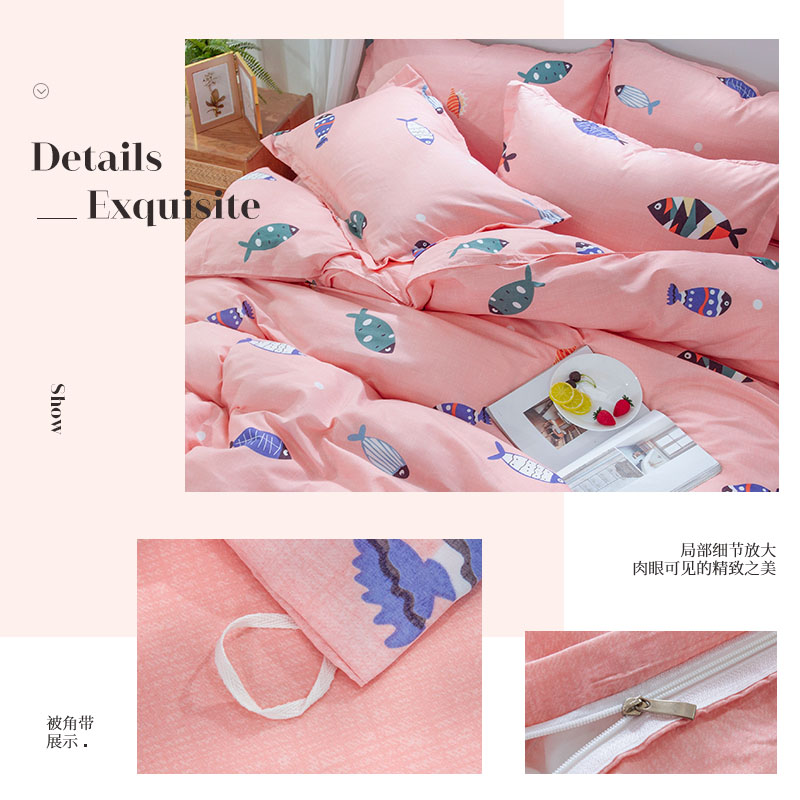 竹苇棉印花四件套【聚酯纤维/好多鱼-粉】 |