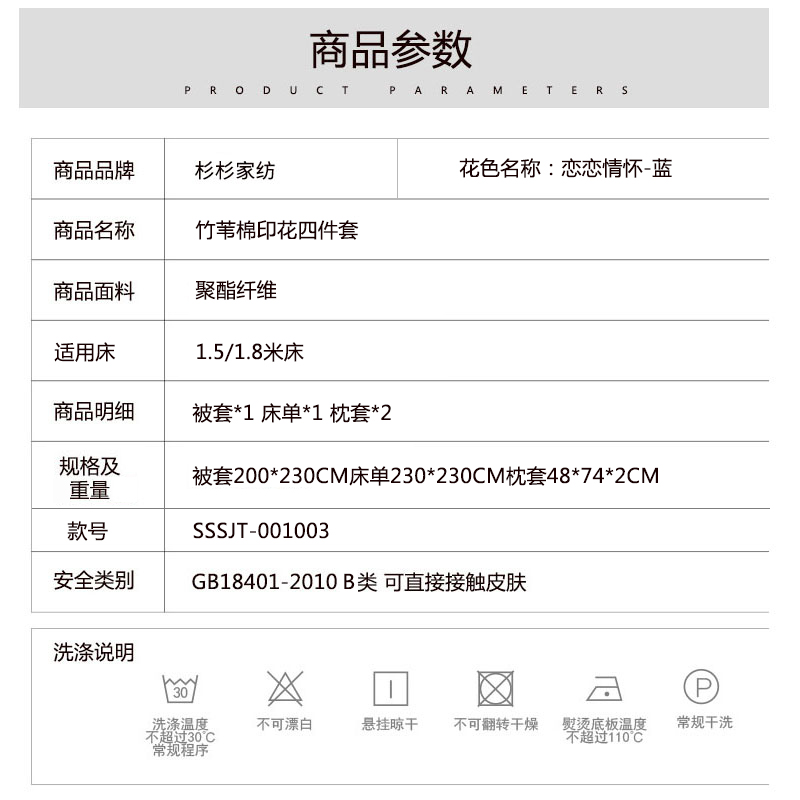 竹苇棉印花四件套【聚酯纤维/恋恋情怀-蓝】 |